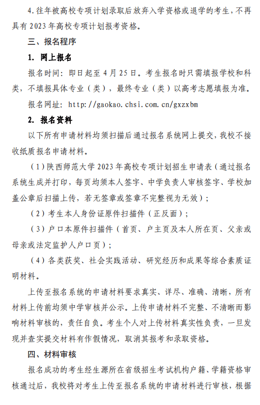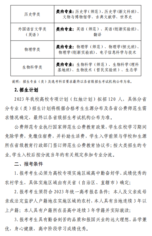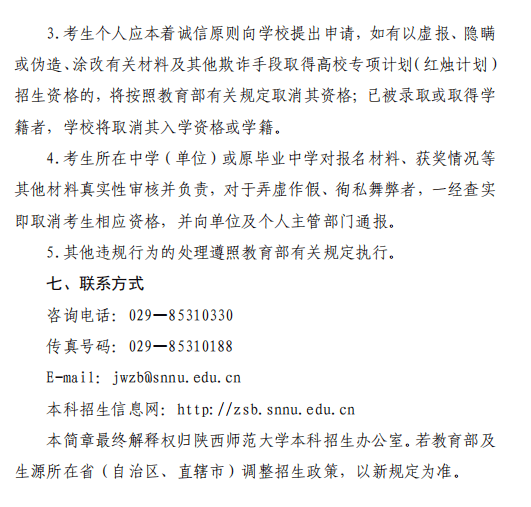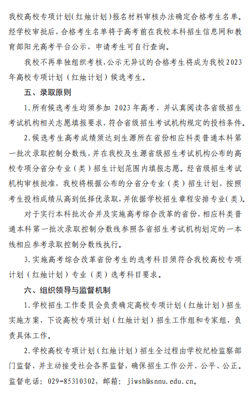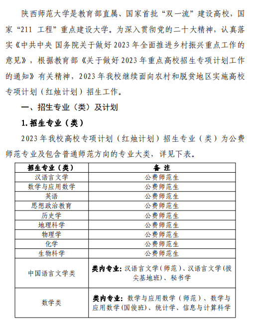 陕西师范大学2023年高校专项计划(红烛计划)招生简章