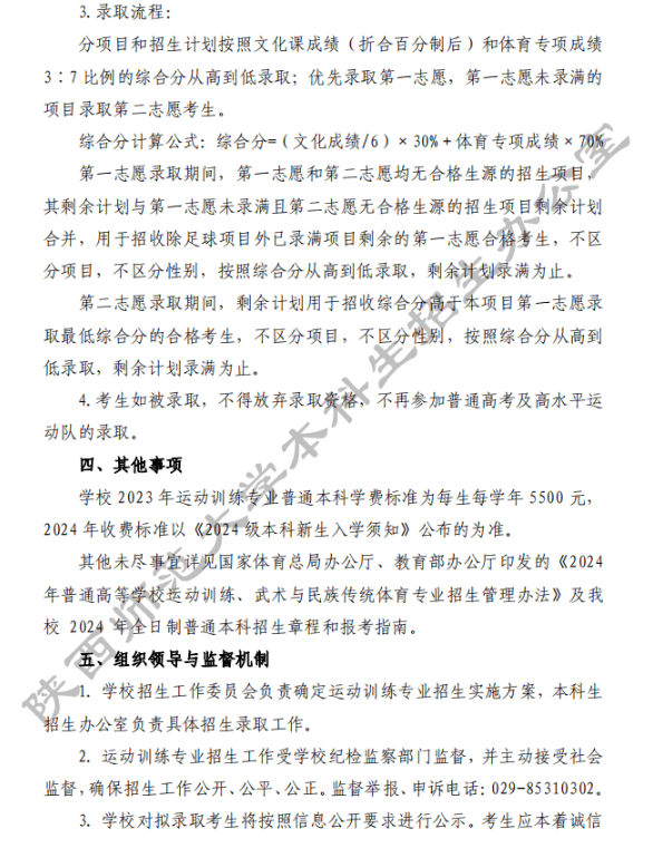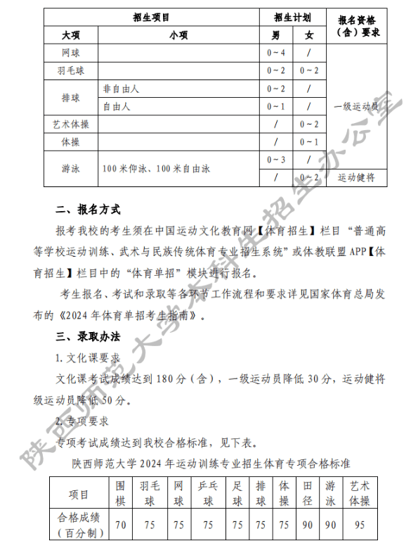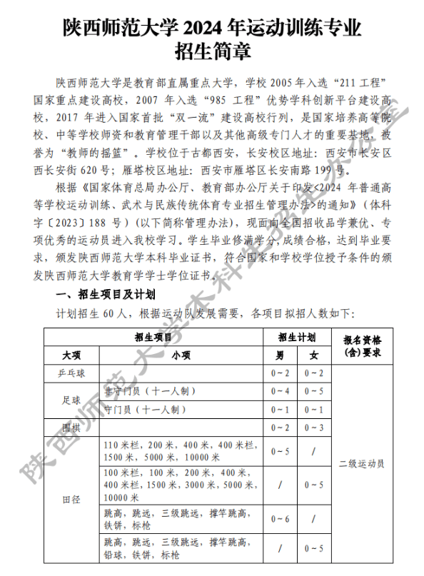陕西师范大学2024年运动训练专业招生简章